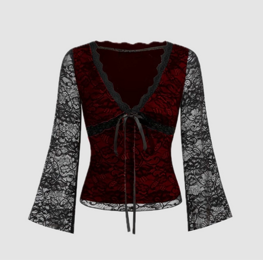 Lace Mesh Bell Sleeve Top